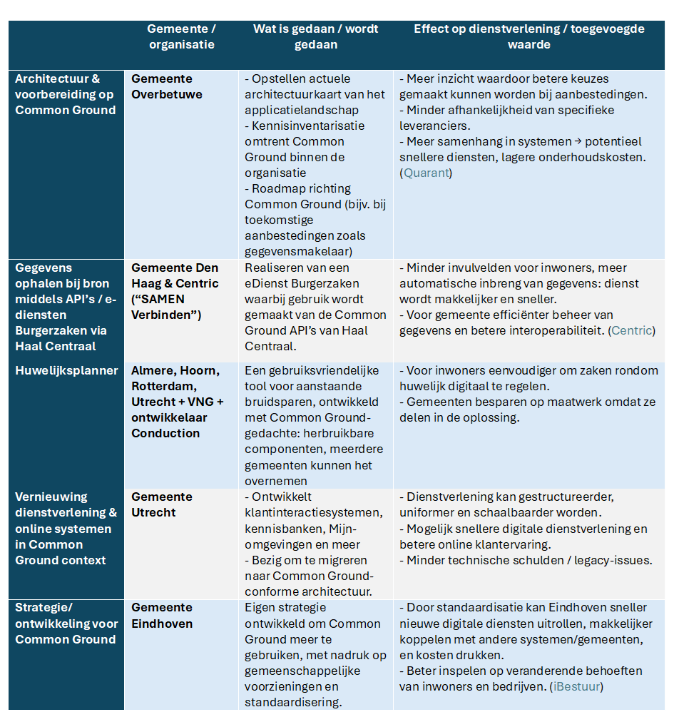 - Kennis binnen de organisaties: veel gemeenten moeten eerst kennis opbouwen over Common Ground, wat de implementatie vertraagt.